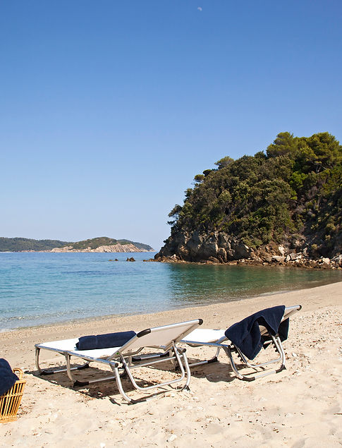 Situated just 50 meters below the villa you can enjoy a beautiful quiet and almost private sandy beach, with transparent waters. Due to its eastern location the beach is sunny from sunrise until about 6 pm. There is almost no wind and you can enjoy snorkeling in the really clear blueish waters.